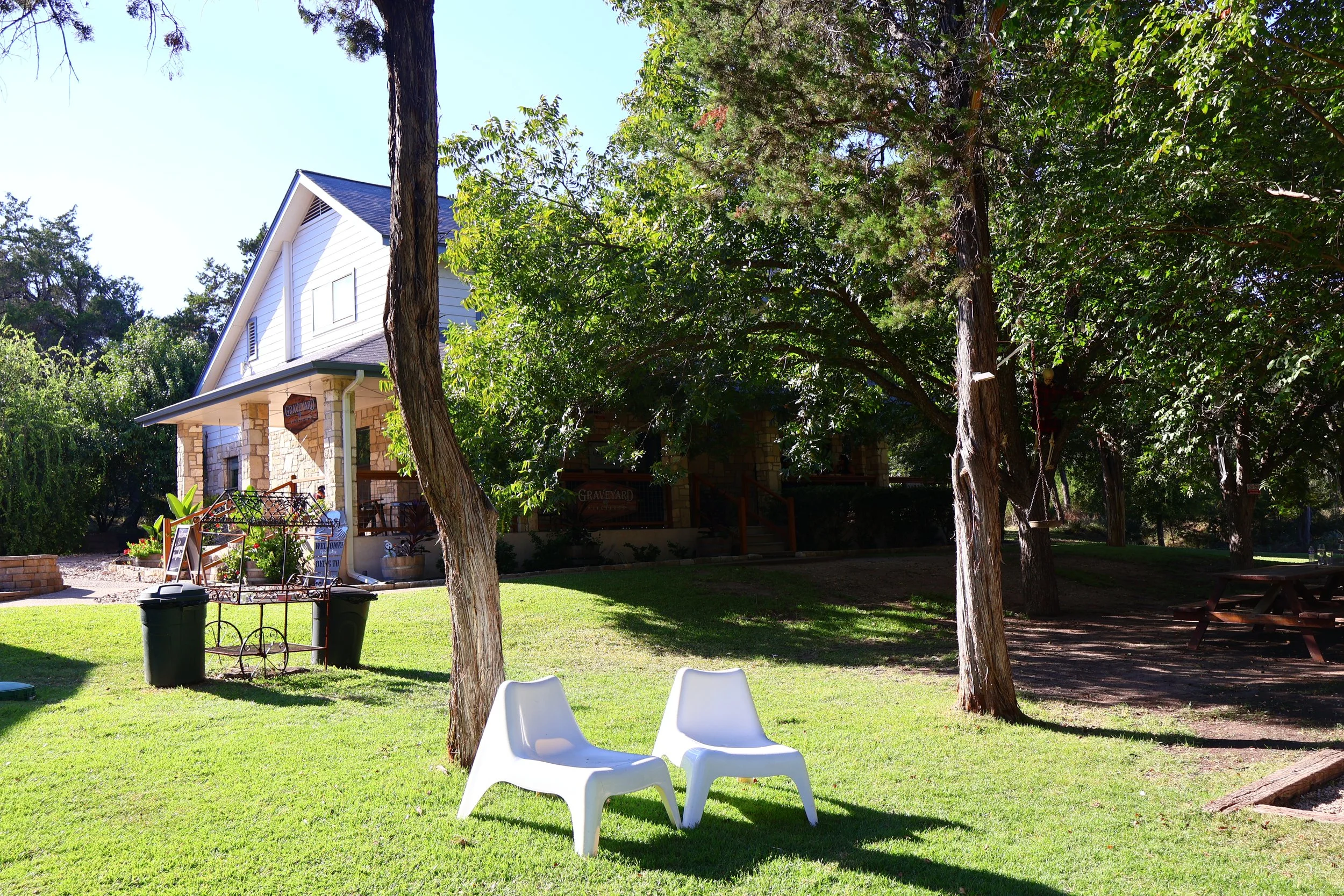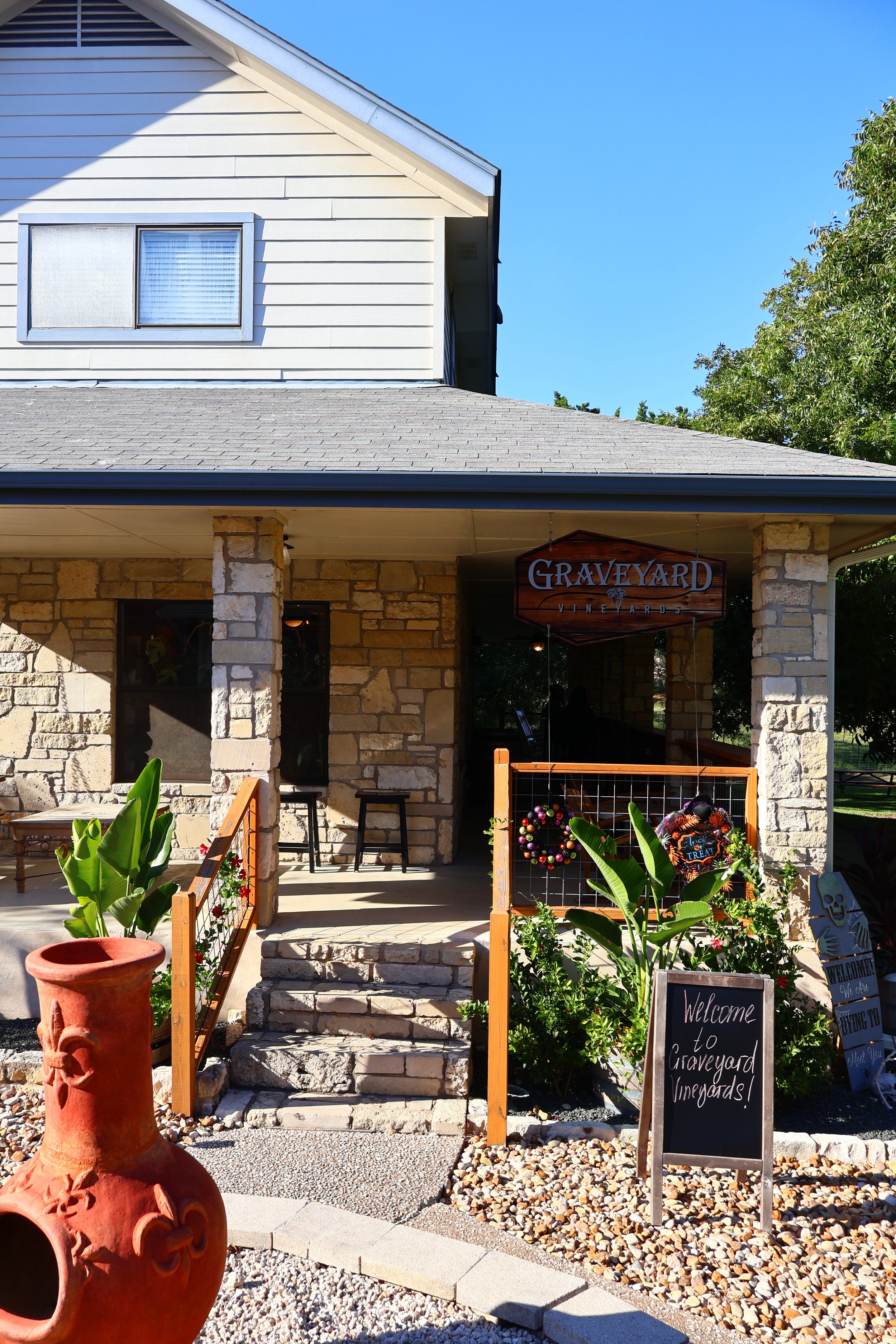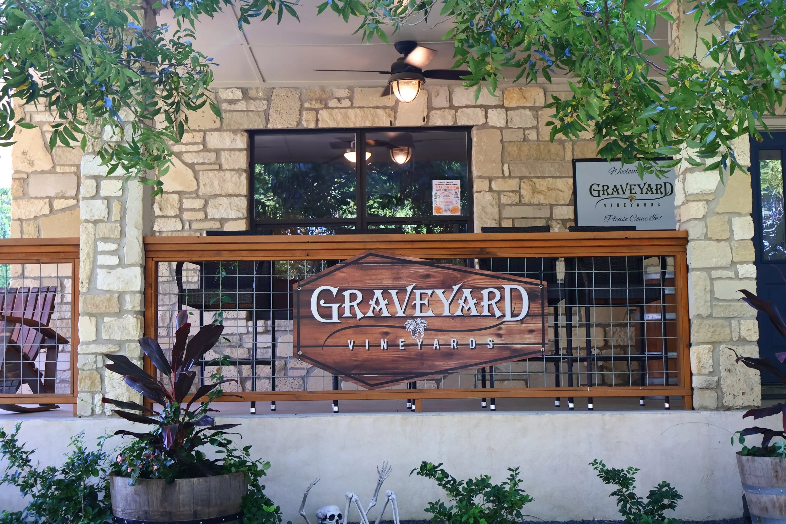 Graveyard Vineyards is a family-owned Texas Hill Country winery with a spooky, playful twist that makes it a favorite stop on any Dripping Springs wine tour. Their original estate vineyard in Paso Robles, California, is celebrated for producing premium Cabernet Sauvignon and Syrah, and their second tasting room in Dripping Springs brings those award-winning wines to Texas wine lovers. Guests can enjoy Paso Robles wine tastings featuring red, white, rosé, sparkling, and even a chocolate dessert wine. With fun, creatively named wines like Mortal Zin, SCREAM, and Deliverance, Graveyard Vineyards offers a one-of-a-kind tasting experience that’s both delicious and memorable.